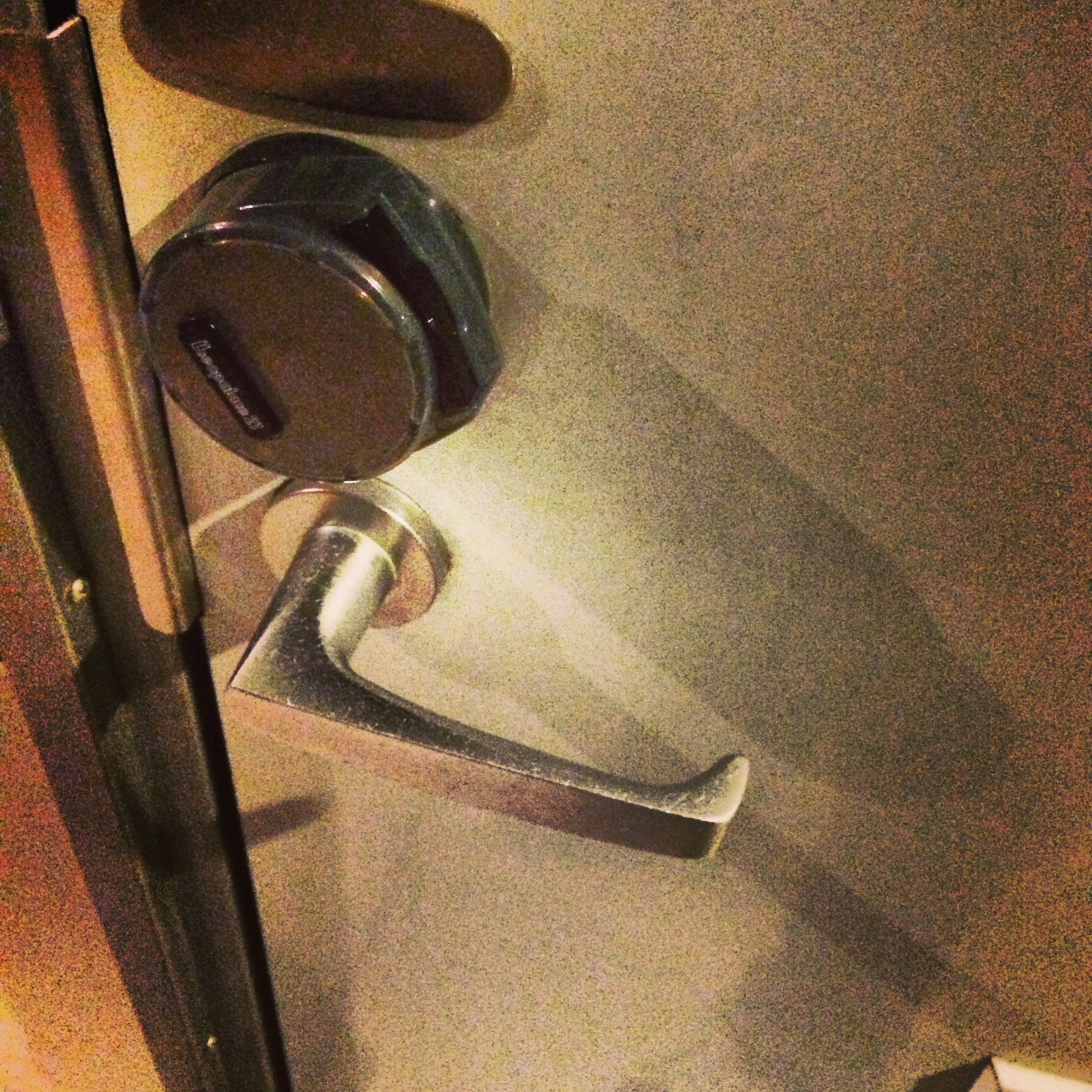 I got home around 7:30, my innocence still intact, blissfully unaware of the ordeal to follow. My first attempt at opening my door was met with mild amusement. “Must’ve put the key in the wrong way,” I mumbled to myself, still thinking about what I wanted to eat for dinner. So I tried it again. And again. By that point, I was pretty damn sure I was sticking the stupid piece of crap in there the way the apartment people had told me to. Maybe I just wasn’t putting the key in fast enough. Yeah, that’s the ticket.